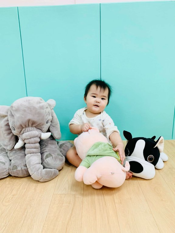 大象來了~碰碰碰小狗來了~汪汪汪咦!這是什麼動物呀!活動中透過聽覺傳達認識繪本裡可愛的動物們,利用色彩鮮豔的動物手偶與寶貝們互動,吸引寶貝的目光與好奇心,讓寶貝自由的探索毛絨絨的動物玩偶,在滿滿的可愛動物陪伴下,彷彿置身小小動物園,活動中可促進寶貝的視覺、聽覺、觸覺、精細動作、手眼協調、肢體平衡及大小肌肉的發展哦!