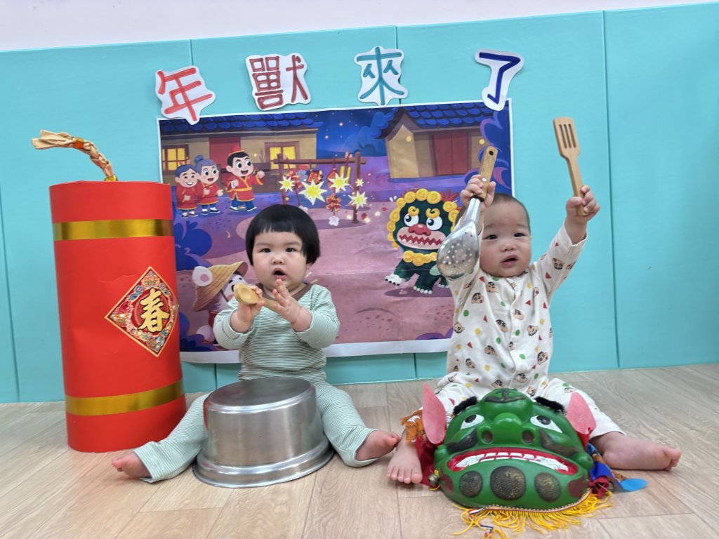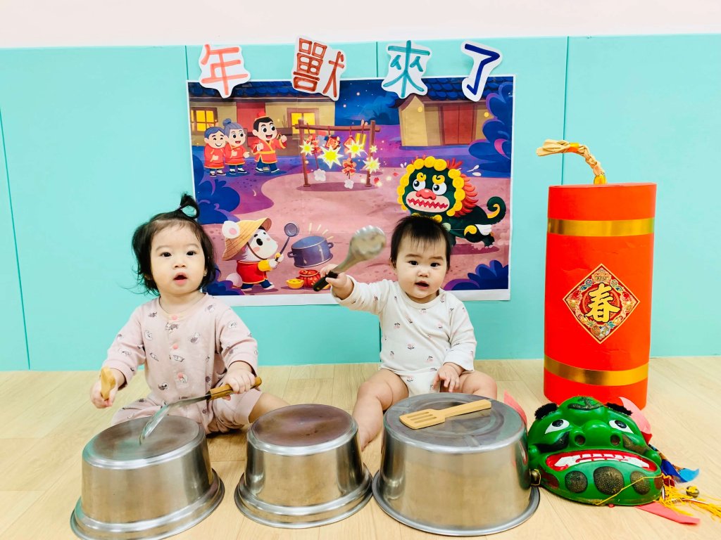 寶貝們化身小小勇士,拿起鍋鏟、湯勺,一起敲敲打打趕走年獸✨