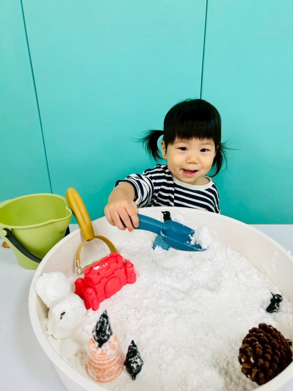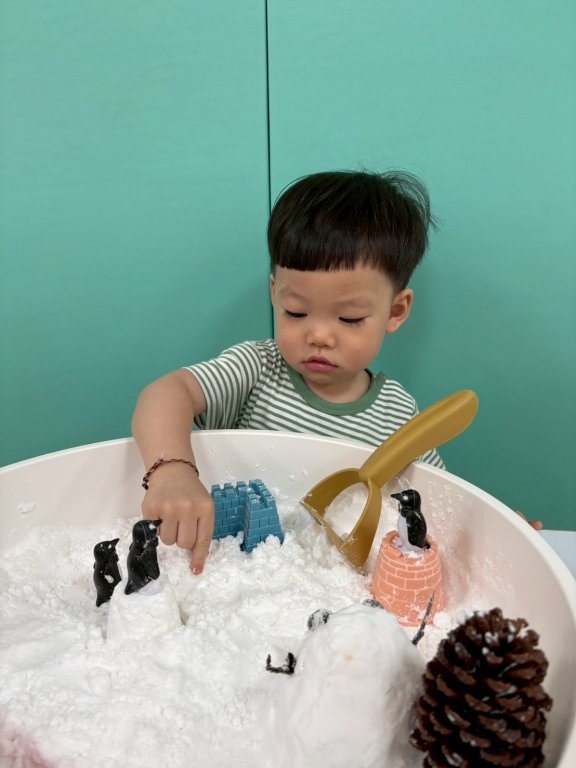 看看寶貝們一起玩雪感官盆~