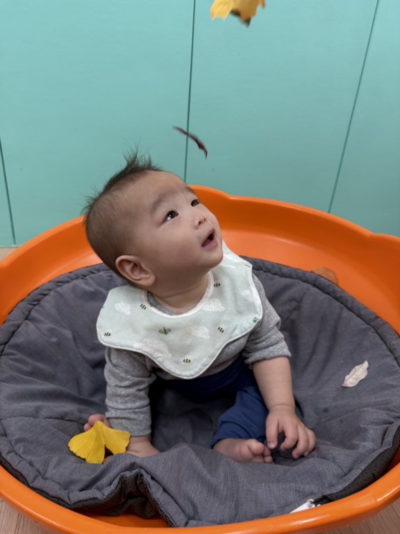 透過自製可愛的落葉牆,寶貝們開心伸手摸一摸、撕下葉子,探索顏色與觸感,課程中享受滿滿的感官小驚喜 🍁