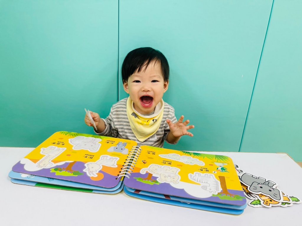 看看上面有好多動物‚寶貝們動動手用手撕下黏貼在繪本上的動物‚藉由動手撕下的這個動作來訓練寶貝手部的精細動作也可以讓寶貝認識一下動物