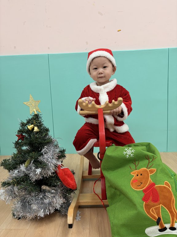 雪花隨風飄;花鹿在奔跑聖誕老公公;驾著美麗雪橇!哇!聖誕老公公送禮物來囉!活動中讓寶貝自由的探索色彩繽紛的聖誕樹,寶貝變裝成聖誕老公公,坐騎可爱的麋鹿搖搖椅,體驗聖誕老公公送禮物的樂趣,在探索與玩樂中感受聖誕節的氛圍裡,感受滿滿的喜悅,活動中促進寶貝的視覺、聽觉、觸覺、精細動作、肢體平衡及大小肌肉的發展哦!