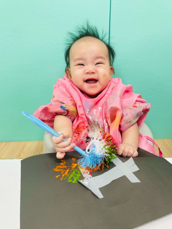 咻~~BOOM~~快來看看寶貝們認真拿起滾筒衛生紙沾上顏料蓋印的模樣,寶貝們努力完成獨一無二的國慶日煙火創作呢~祝:雙十節快樂❤️