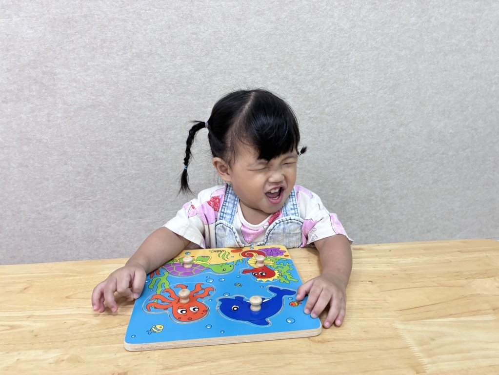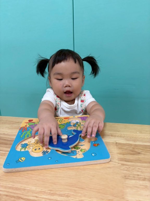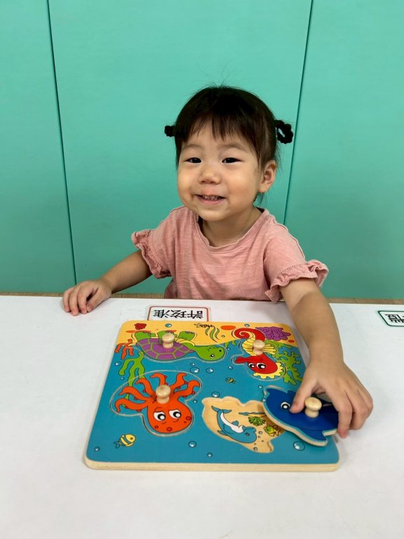 看看寶貝們要把對應的動物模型或圖形「崁入」對應的凹槽中,訓練手眼協調、形狀辨識、認識海洋生物。