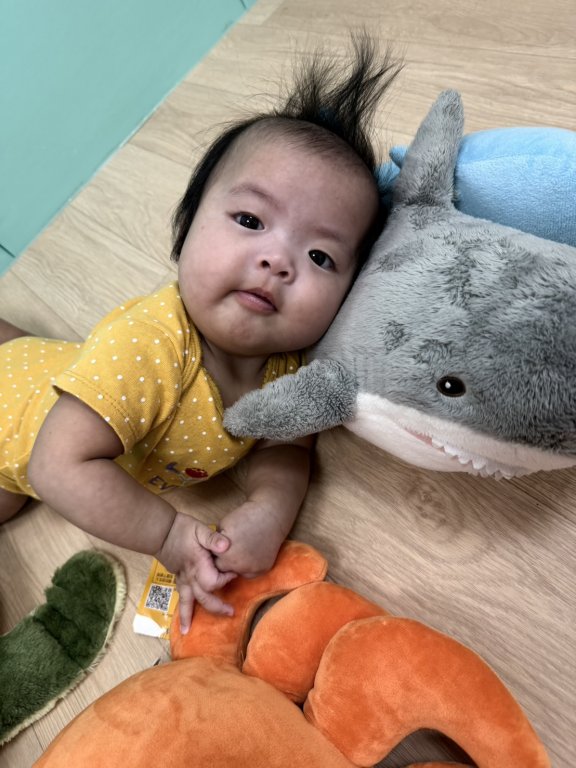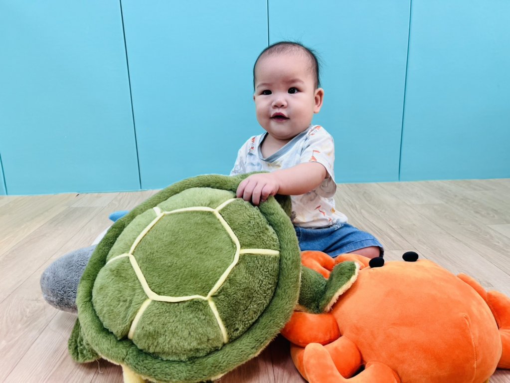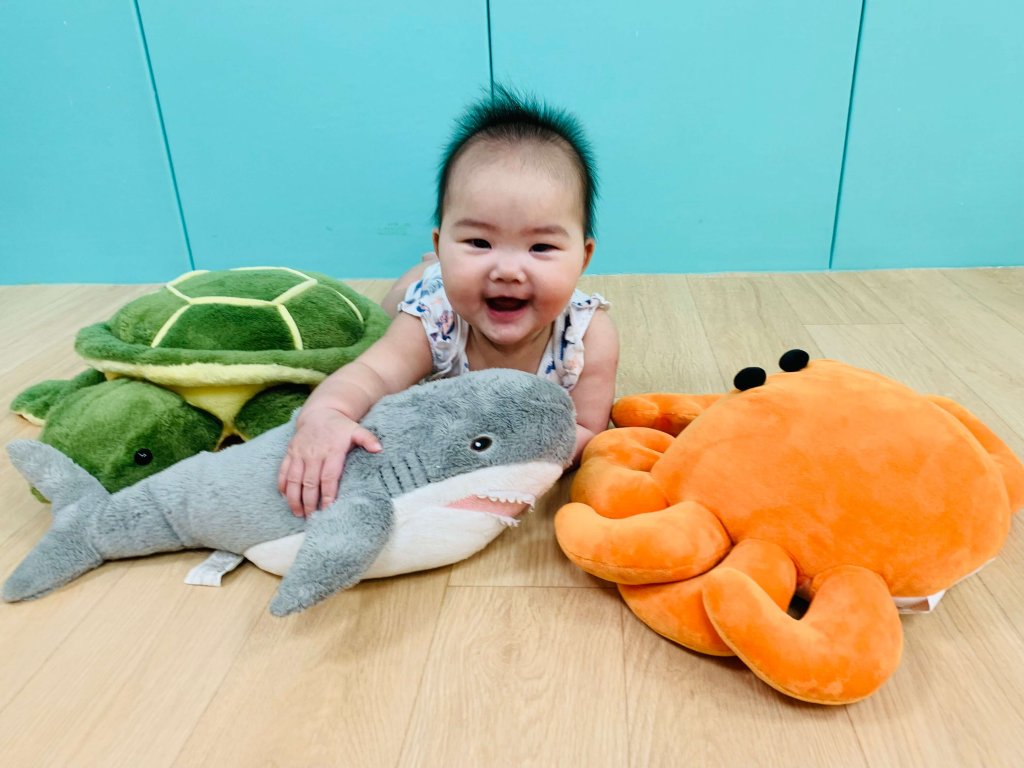 伸左手~伸右手~變成小魚游啊游伸左手~伸右手~變成鯊魚咬一口引導寶貝們認識海底世界中色彩繽紛的海洋生物,有海龜、螃蟹、鯊魚、小海豚,讓寶貝們自由的玩樂與探索,利用海洋生物與寶貝們互動,可訓練寶貝的視覺、觸覺、精細動作及大小肌肉的發展哦!