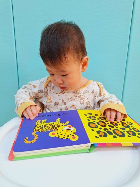 打開觸覺書,讓寶貝摸摸一條條的紋路,感受立體浮出的紋路。咦!這是黑白條紋的斑馬!哇!這是顏色鮮明的花豹呢!藉由語言的互動讓寶貝用手觸摸,引導寶貝認識動物,藉由書本裡百變的鮮艷花色,加強視覺的刺激吸引寶貝的目光,同時達到視聽覺和觸覺的學習!