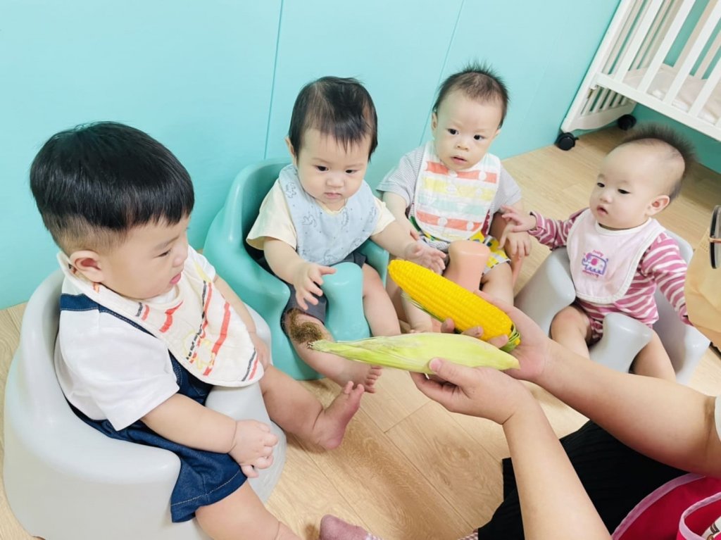 老師引導寶貝當小小試吃員先認識番茄,分辨大小番茄,摸摸番茄果皮,一起來採小番茄,介紹番茄是蔬菜也是水果喔!