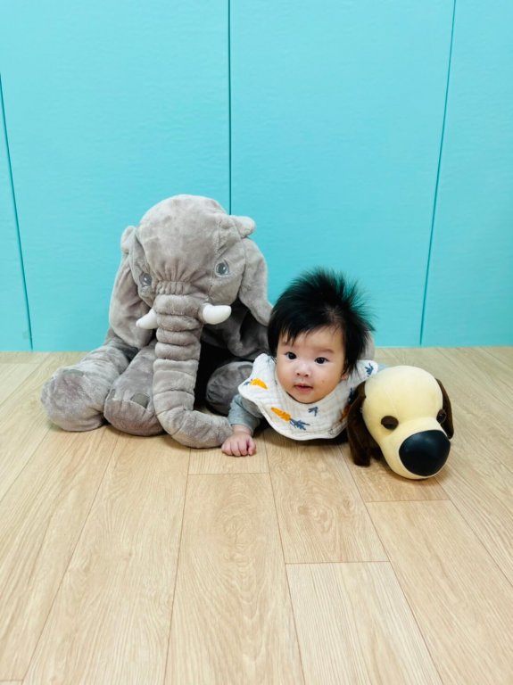 活動中帶領寶貝認識-狗、豬、大象玩偶,透過口語傳達讓寶貝對狗、豬、大象等動物名稱的認識,在觸摸過程中,讓寶貝感到舒適感,也透過動物的叫聲,吸引寶貝的目光,引發孩子的樂趣喔!
