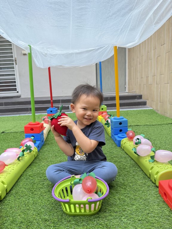 活動中利用感官盆活動,透過各種素材,讓寶貝們用手觸摸、抓取去探索,從遊戲中自然認識農場動物,享受探索的樂趣,也刺激幼兒觸覺、視覺與嗅覺感官呢~