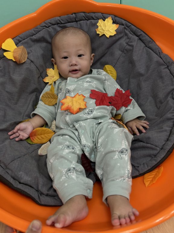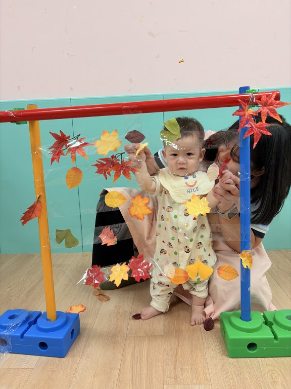 透過自製可愛的落葉牆,寶貝們開心伸手摸一摸、撕下葉子,探索顏色與觸感,課程中享受滿滿的感官小驚喜 🍁