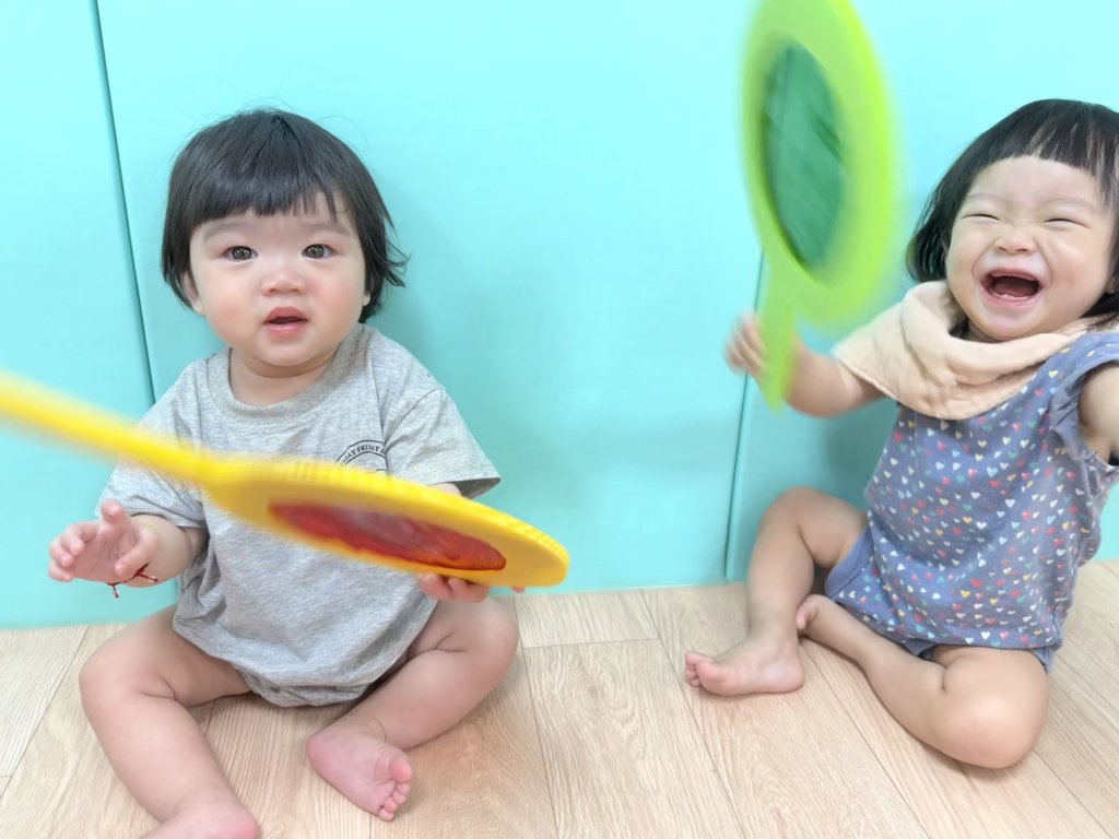 寶貝們開心聽著指令跳入形狀框框裡,真的好厲害~