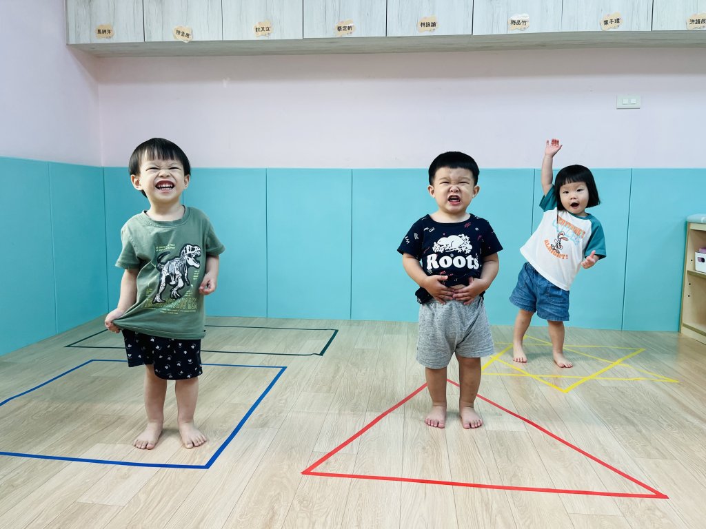 寶貝們開心聽著指令走進形狀框框裡,好可愛呢~