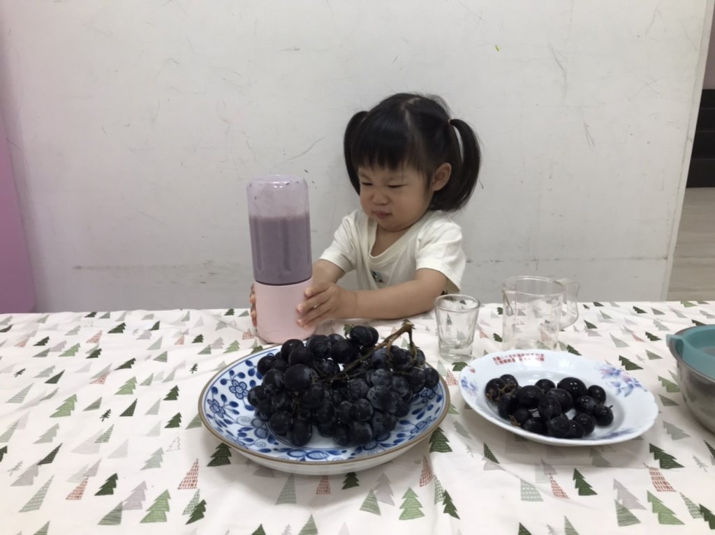 葡萄在果汁機中轉呀轉實在是太有趣啦~來一口葡萄牛奶汁,嗯~真好喝