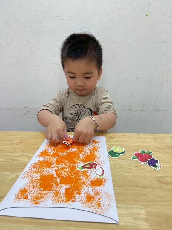 快來當小農夫幫忙摘樹葡萄囉~過程中透過感統器材及紫色小球製作了一顆樹葡萄,通過摘葡萄的過程中能增強幼兒手指及手腕的轉動能力,也能提高幼兒的專注力和手部精細動作,每位小農夫都相當的認真的摘葡萄,籃子中滿滿的葡萄呢!