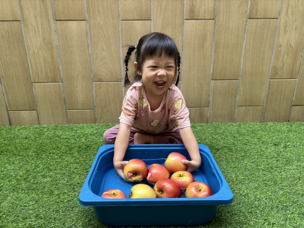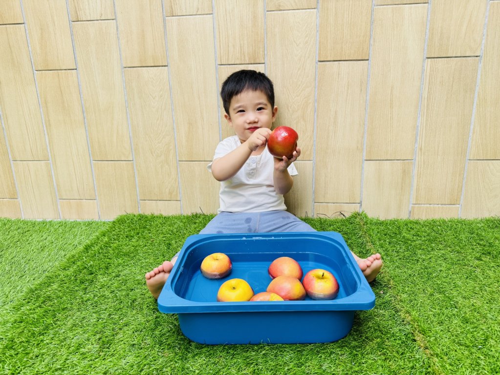 享用美味的的蘋果前,寶貝們先幫蘋果洗洗澡,將蘋果洗的亮晶晶唷!並享用美味的蘋果