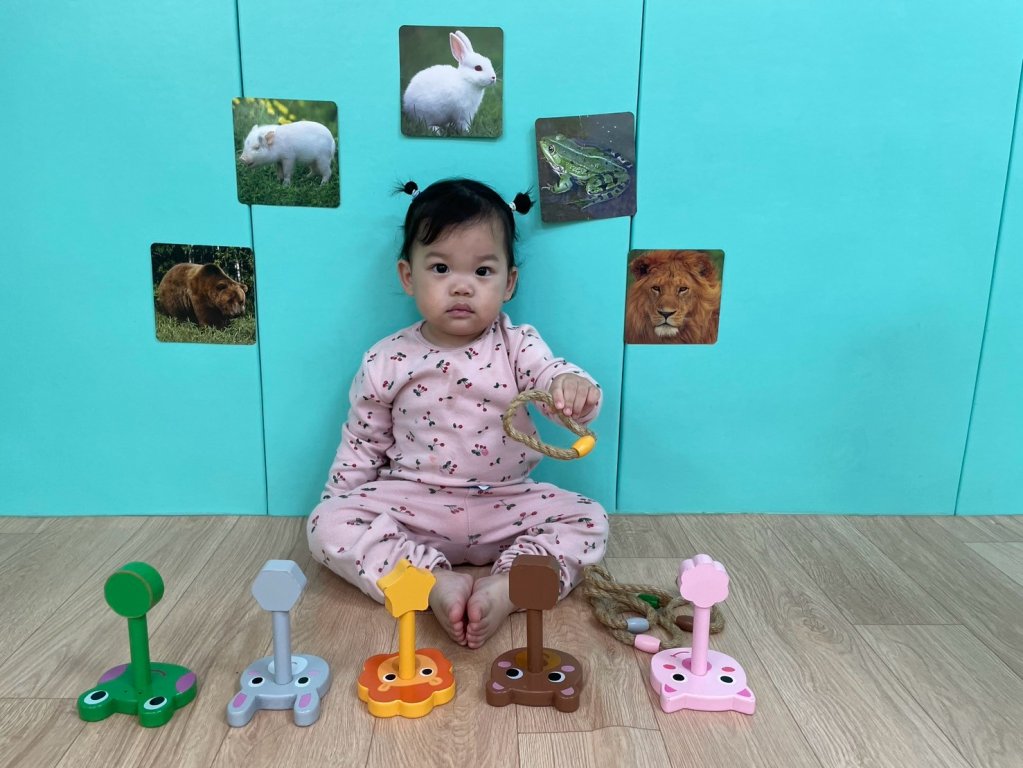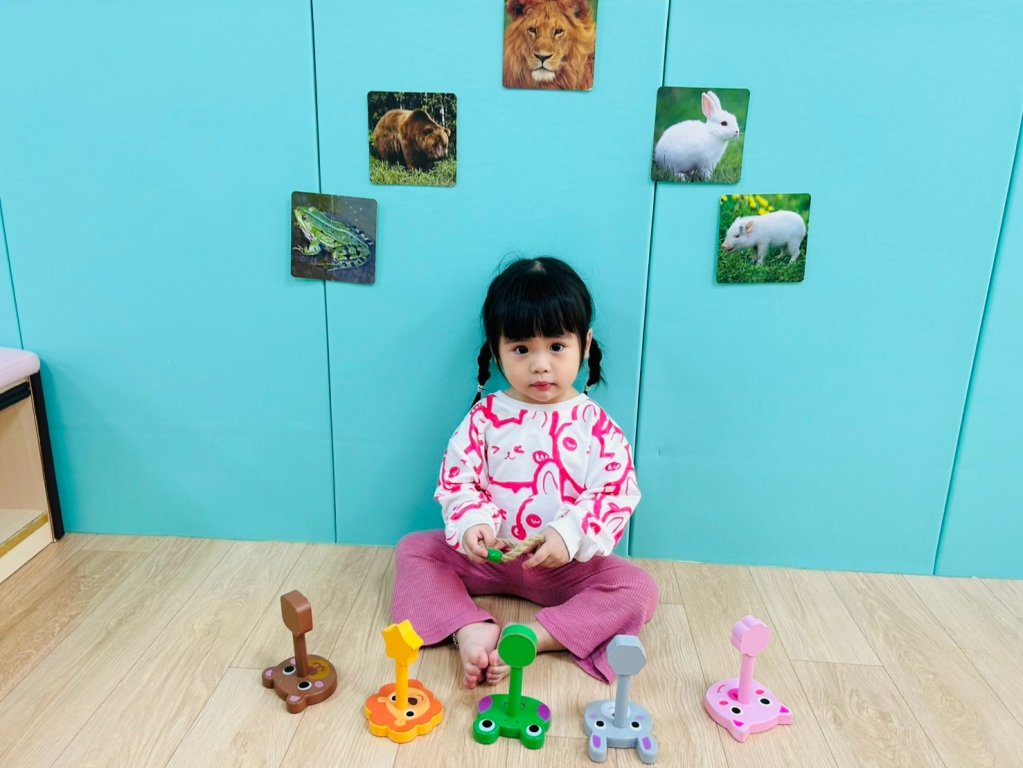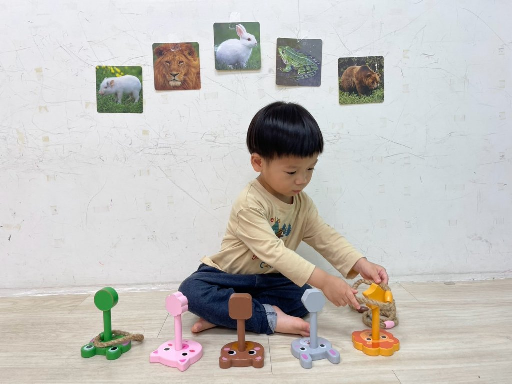 讓幼兒透過遊戲認識不同動物的特徵與顏色相對應,「丟」及「套」的動作,訓練幼兒手眼協調~