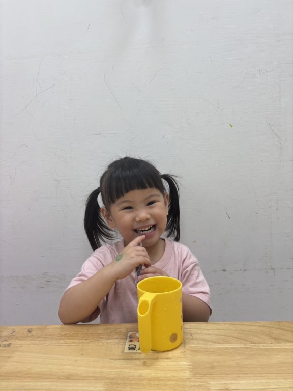 利用繪本《鱷魚怕怕牙醫怕怕》帶幼兒們進入情境,先和幼兒們一起討論鱷魚為什么怕刷牙,利用教具操作引導幼兒「幫鱷魚刷牙」,讓幼兒在關愛小動物的過程中理解刷牙的重要性。
