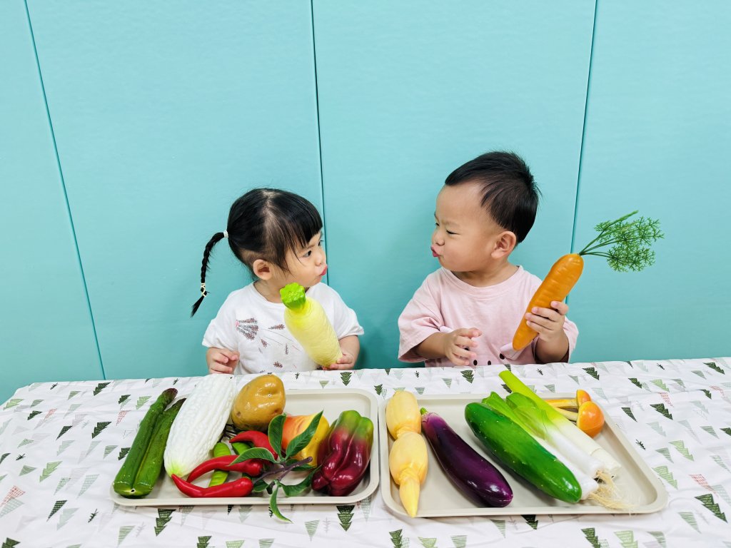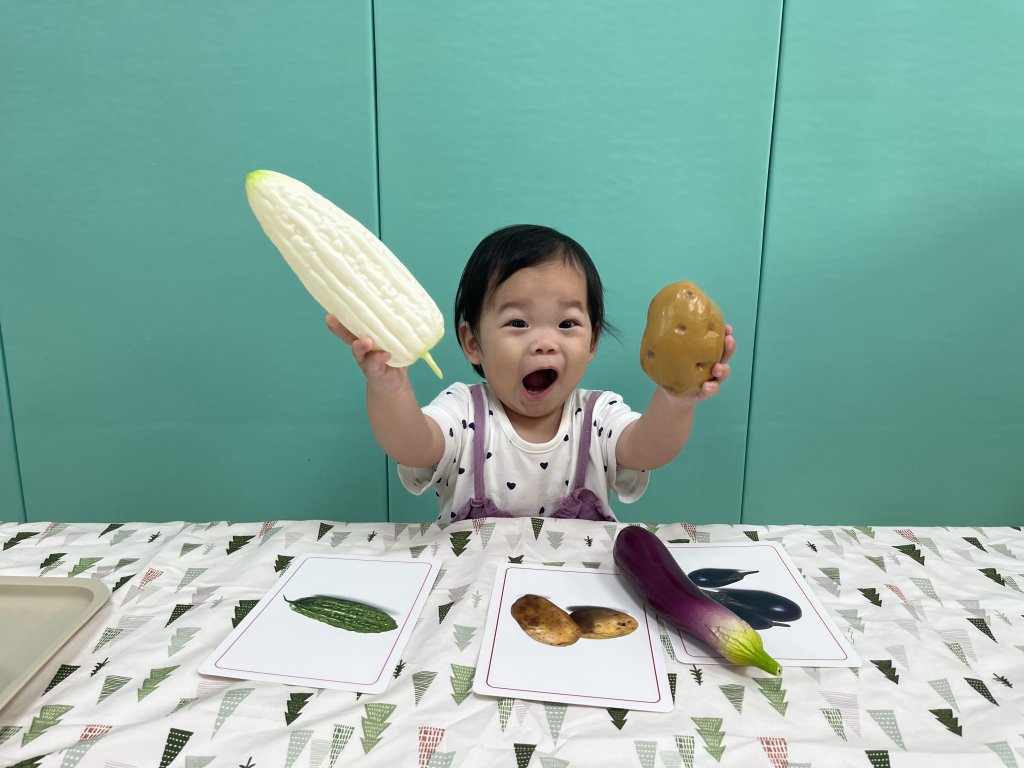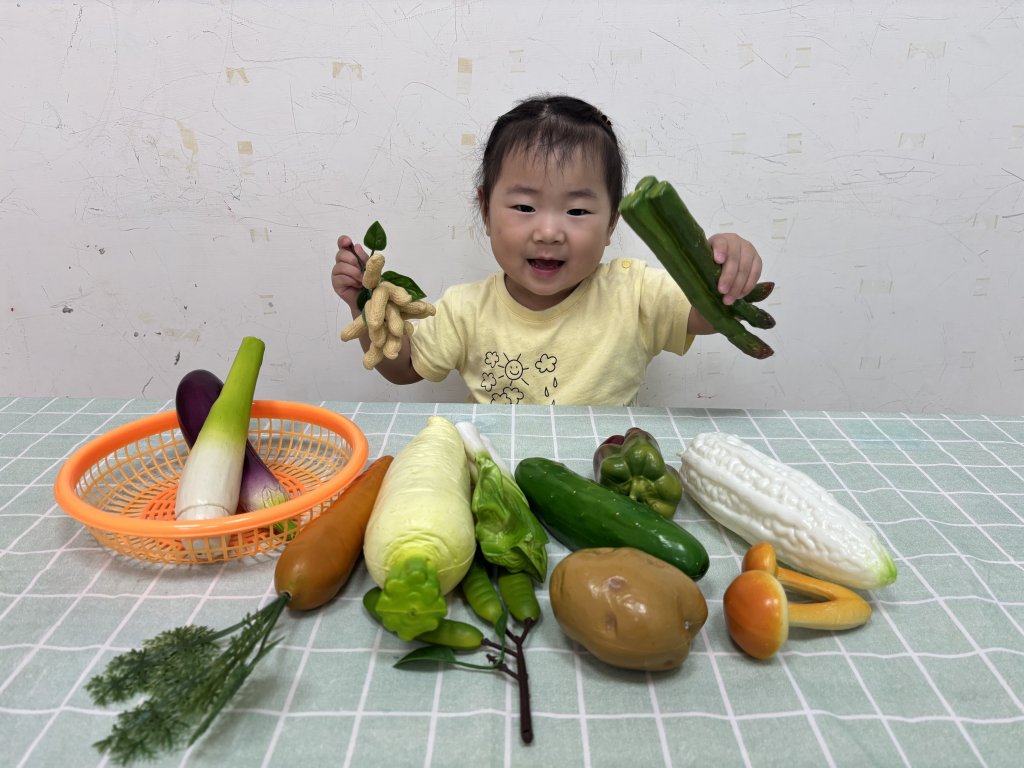 認識好多好吃的蔬菜~有紅蘿蔔、白蘿蔔、馬鈴薯、玉米⋯等,都是平常常吃的蔬菜,寶貝挑選出自己喜歡的蔬菜囉!
