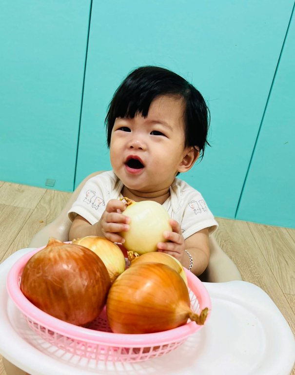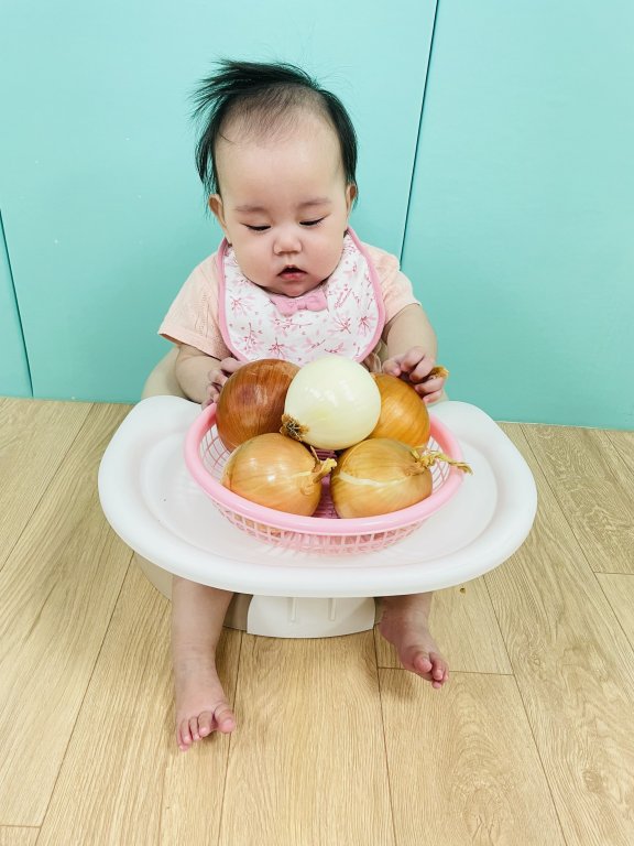 哇~來認識特別的蔬菜「洋蔥」摸一摸洋蔥的外觀圓圓的像小球,當老師將洋蔥一層一層撥開聞一聞洋蔥特殊的氣味刺鼻辛辣,認識的過程中孩子透過眼睛視覺及抓握手中洋蔥的觸覺和靠近聞到的嗅覺,寶貝還是會忍不住想要咬一口呢!