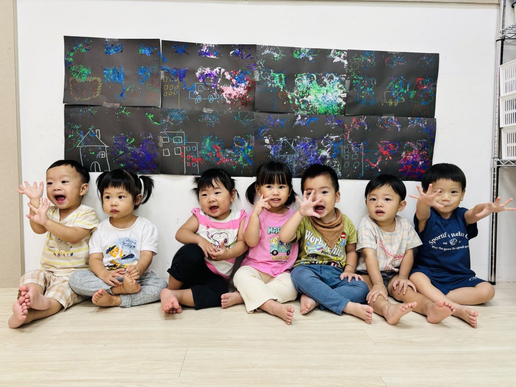 咻~~BOOM~~快來看看寶貝們認真拿起滾筒衛生紙沾上顏料蓋印的模樣,寶貝們努力完成獨一無二的國慶日煙火創作呢~祝:雙十節快樂❤️