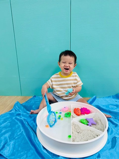 一起來探索海底世界~寶貝在充氣拍墊上面,試著用手手、拍一拍,腳腳踏一踏,墊子裡面裝了好多水水,過程中可以幫助孩子促進運動技能,增強頸部,背部和手臂的肌肉,刺激手眼協調,也可以享受觸覺和視覺,看看寶貝玩的有多開心呀!