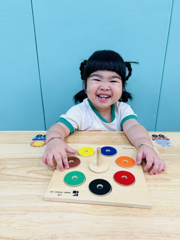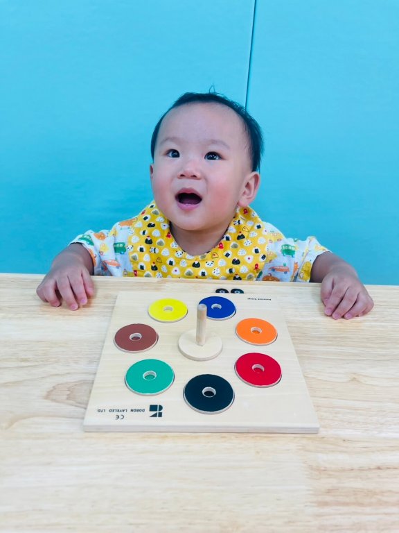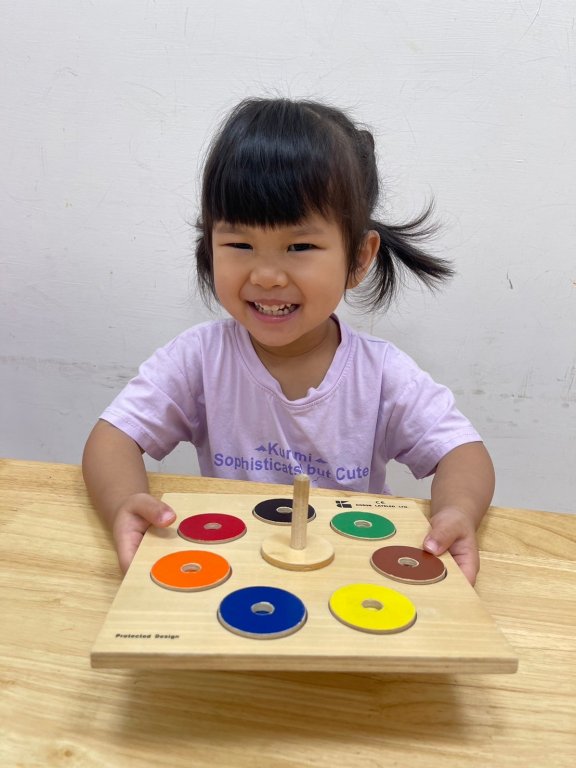 寶貝將顏色圈圈對應到相同顏色色塊看看寶貝有沒有完成,是不是很厲害