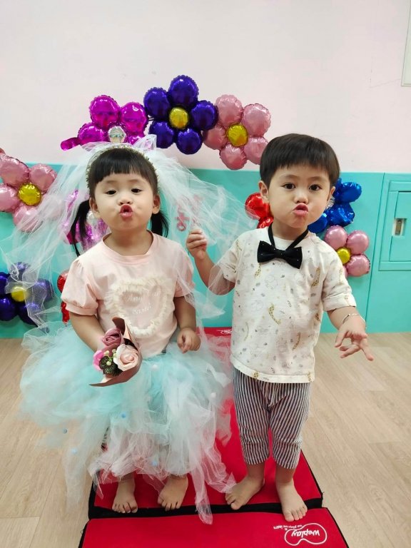 介紹名畫「婚禮」,讓寶貝欣賞一幅美麗的畫,並邀請寶貝一起來模仿畫中人物,成為畫中的新郎新娘呢!