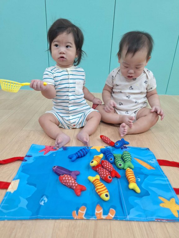 寶貝專注地操作釣竿,享受成功釣到魚的成就感。和好朋友一起釣魚時,更是笑聲連連,開心地分享彼此的收穫呢~