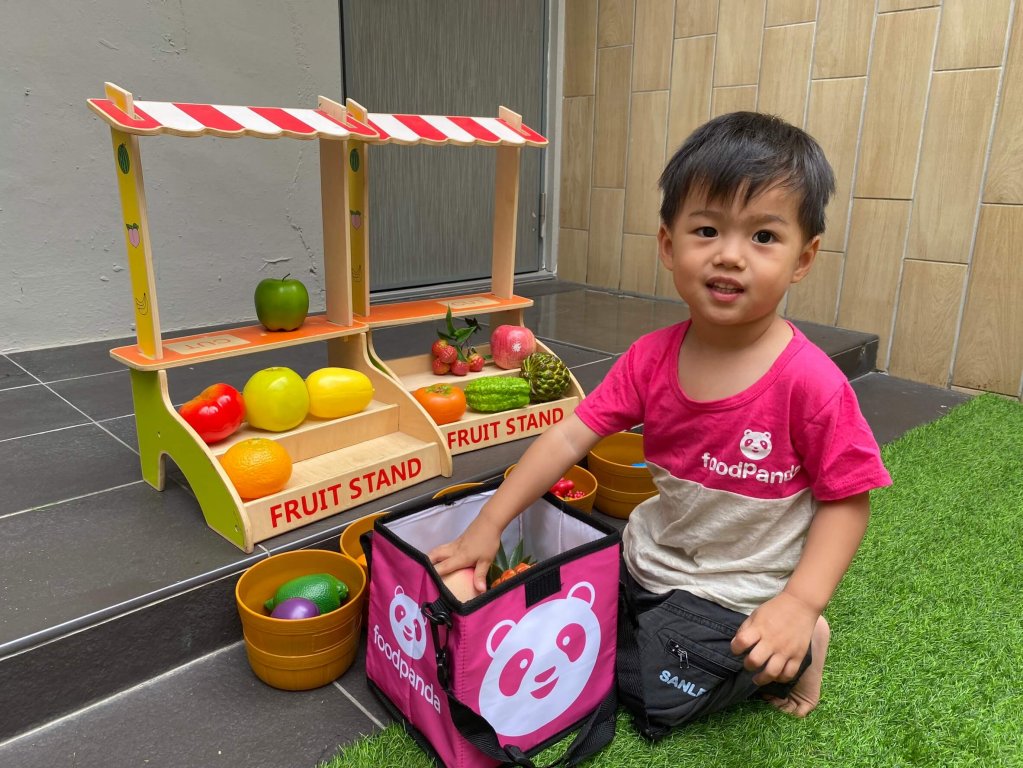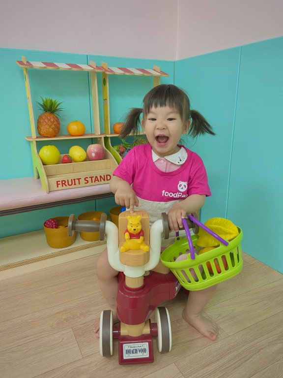 「你訂餐 我外送」騎著滑步車購買水果準備外送囉!認真的外送員是不是很可愛呀~看看寶貝都買了哪些水果吧!