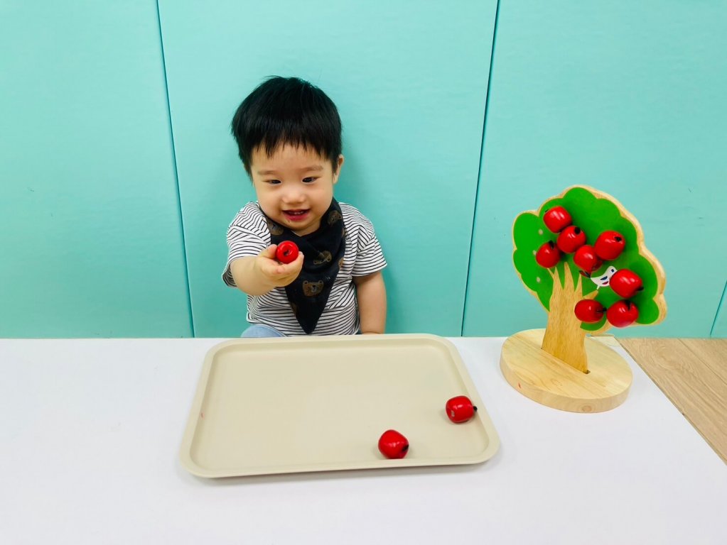 每一顆蘋果都有磁鐵,對準樹上的磁鐵貼上去,我的蘋果樹完成拉~