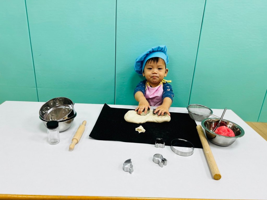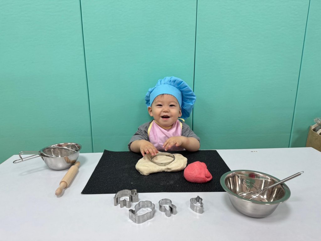 揉一揉阿捏一捏,透過揉麵團,可以增加手部觸覺唷~
