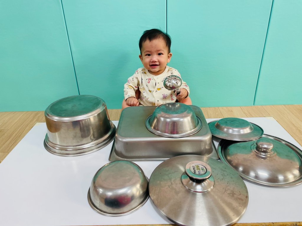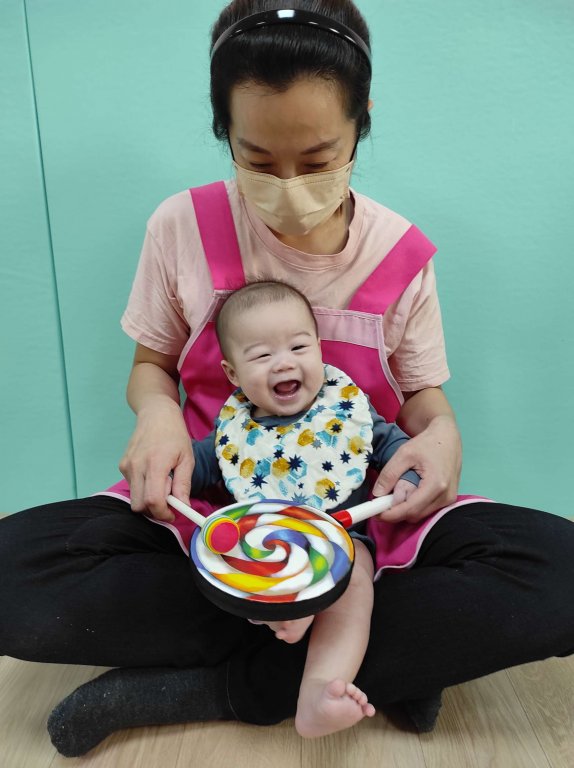 早安饅頭這首活力歌曲,搭配色彩鮮艷的棒棒糖鼓,引導寶貝們抓握鼓棒敲出聲音時,碰碰碰~發出清脆的聲響都很感興趣呢!觀察寶貝們體驗這項樂器的表現,像小小音樂家樂在其中呢!