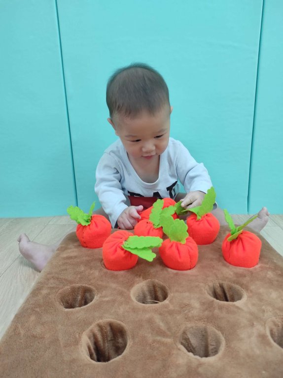 嘿呦~嘿呦~拔蘿蔔 是一首輕快又有節奏的兒歌孩子們準備要來拔蘿蔔囉!!!在拔蘿蔔的過程中寶貝能訓練精細動作、雙手協調和認知能力,當拔起每根蘿蔔時開心得表情,還能夠一根接著一根的拔起來,臉上露出得意的表情看起來相當有趣呢~ ~ ~