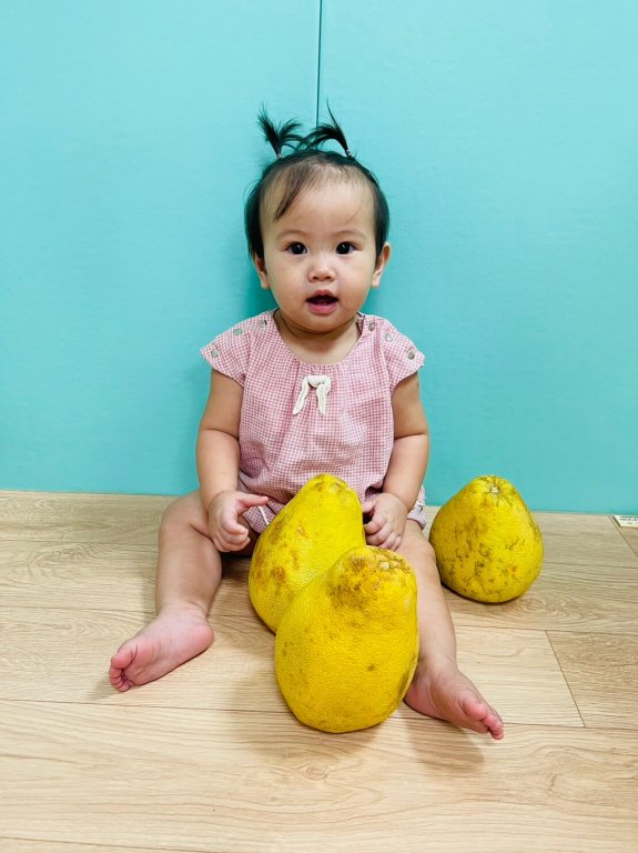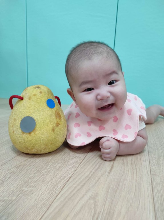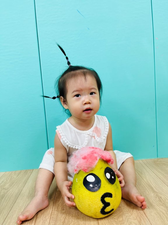 柚子圓又大~寶貝們創作出可愛的專屬表情柚子完成後和柚子拍一張合照~喀嚓!真可愛