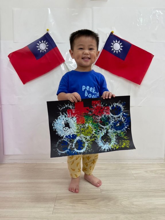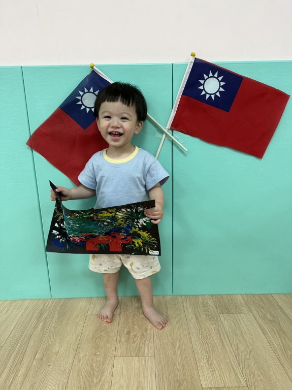十月十日是台灣的生日,老師引導孩子用紙筒蓋印,蓋出美麗的煙火。