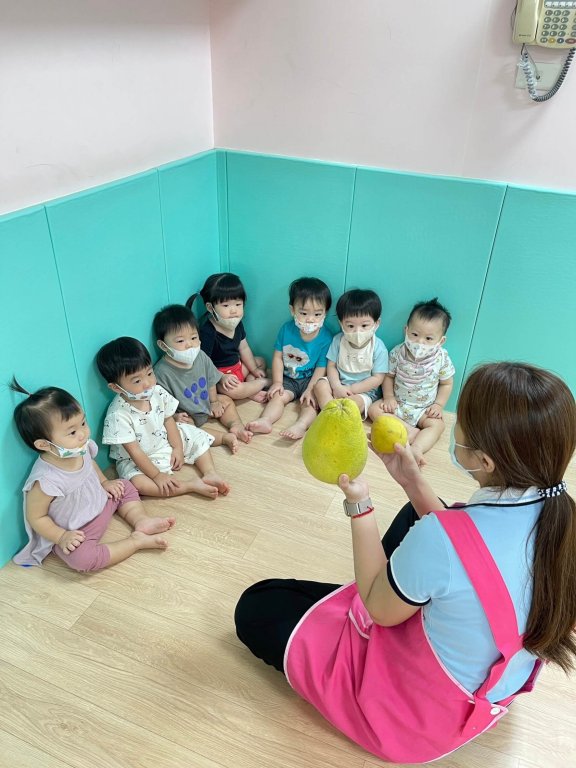 從繪本認識中秋節的活動課程中,讓孩子觸摸柚子感受粗粗的感覺,聞著帶有香氣的柚子皮,引導大小孩子用不同顏色的圓點貼,進行柚子創作,感受著中秋活動課程體驗,寶貝們都相當樂衷呢!