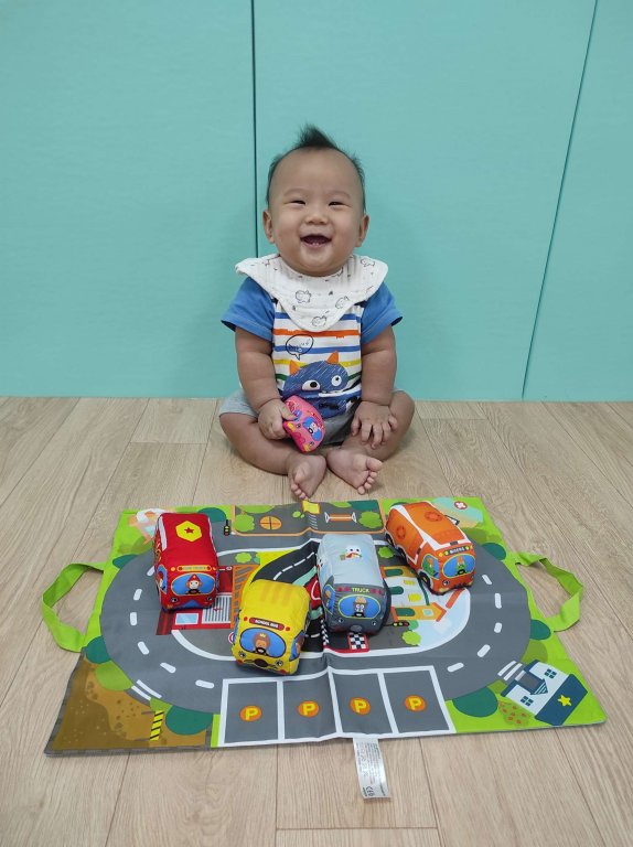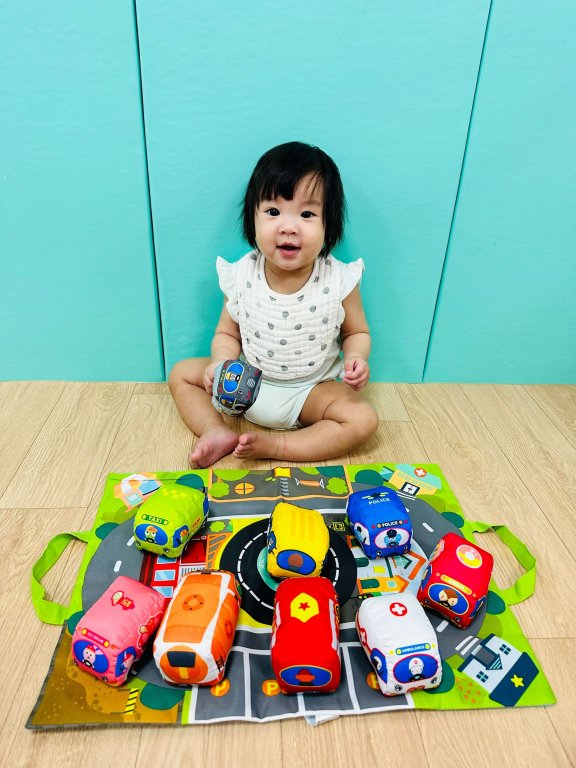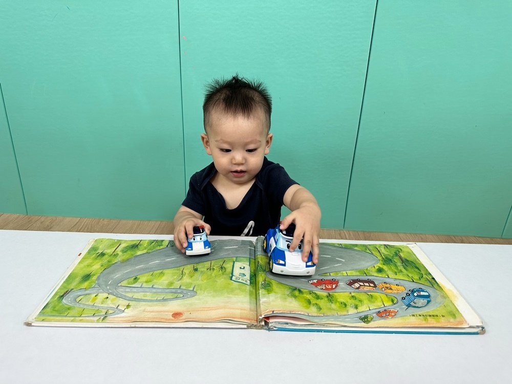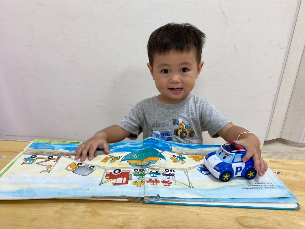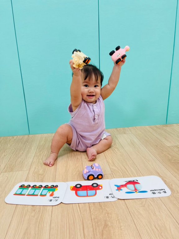 藉由圖卡搭配實物讓孩子對於交通工具更加的熟悉,來看看寶貝手上都拿什麼交通工具呢?
