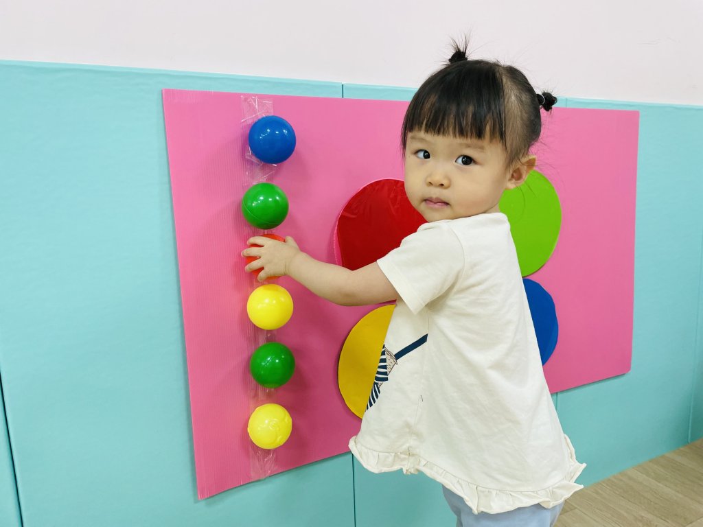 運用繽紛的蝴蝶翅膀來讓寶貝認識各種顏色,藉由彩色小球顏色來讓孩子能找出相同的顏色,黏貼上去。