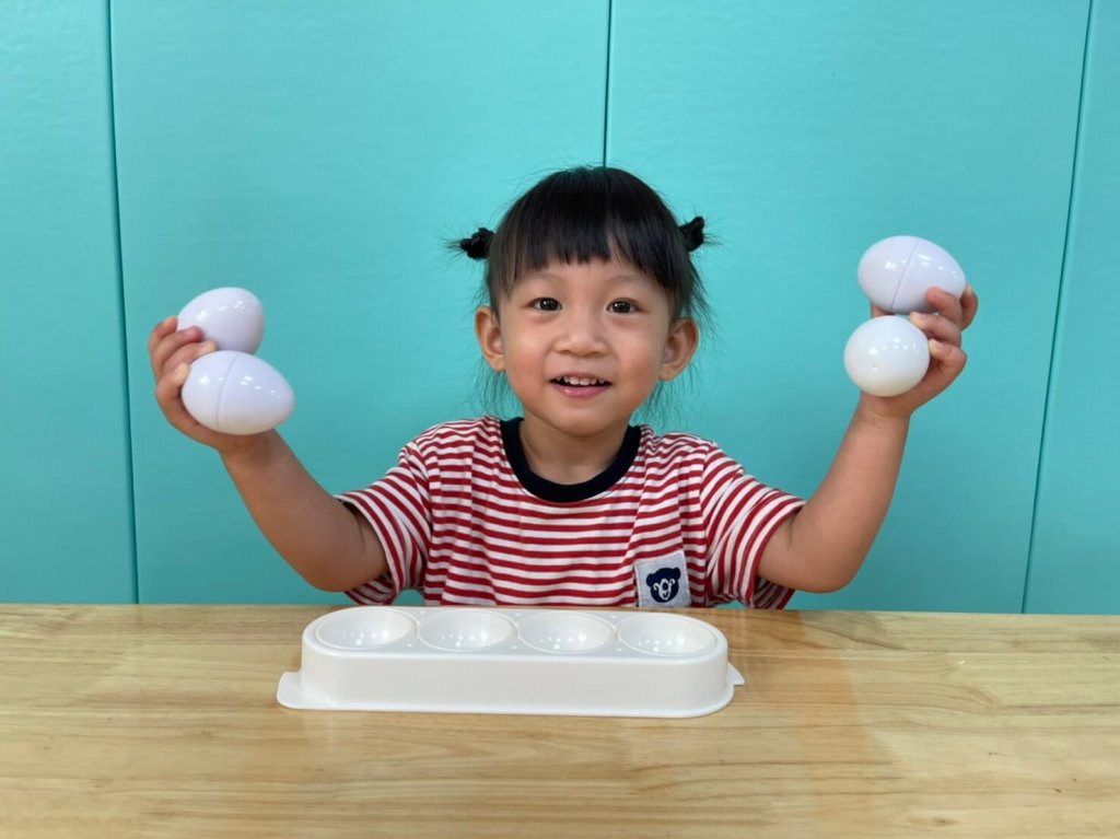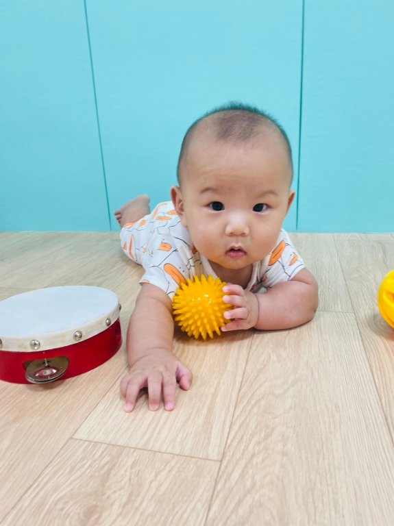 課程中寶貝透過手指或單手抓住球,感受球體帶來的觸感及外觀形狀,高高舉起槌子或放下手臂,對準洞口的小球,透過此活動訓練寶貝的抓握能力以及手眼協調技巧,寶貝都有成功的敲擊到小球喔!
