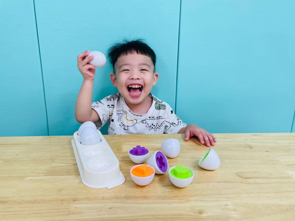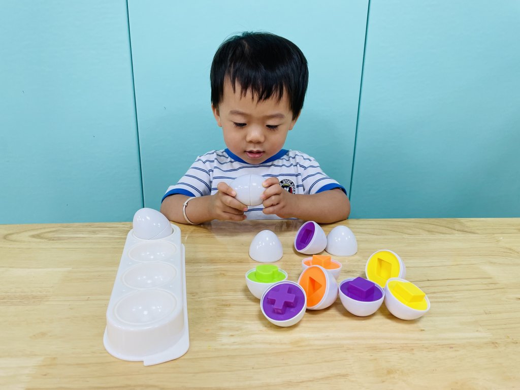 找一找、轉一轉、放一放、裝一裝看看寶貝有沒有配對到一樣的形狀。