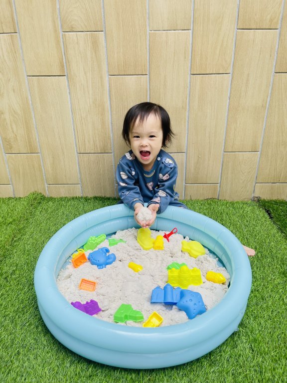 寶貝玩沙吹泡泡好快樂
