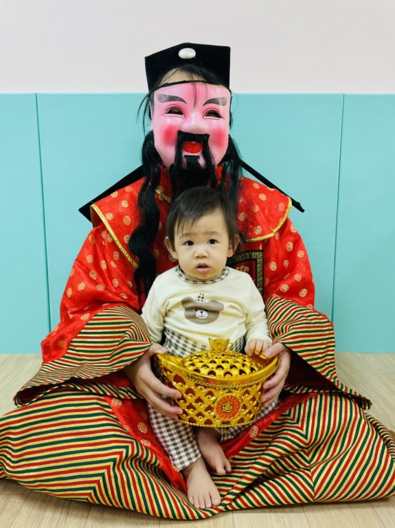 來看看寶貝跟財神爺一起拍照神爺一起拍照