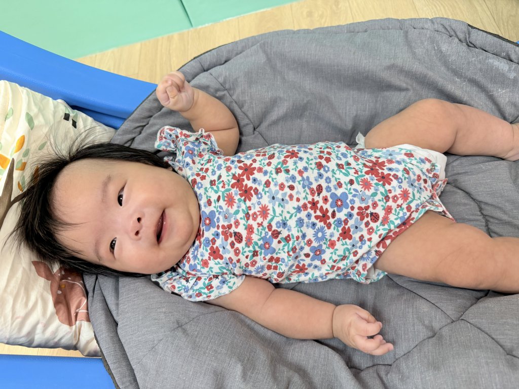 寶貝剛來愛薇樂,對環境有些陌生,需要老師陪伴與安撫。漸漸放鬆後,開始願意觀察與探索,相信寶貝會越來越棒的。