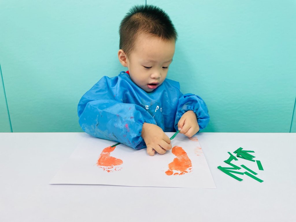 哇~看到寶貝們開心的在紙上踩呀踩,每位寶貝都創造出專屬的紅蘿蔔呢!真是太厲害啦~