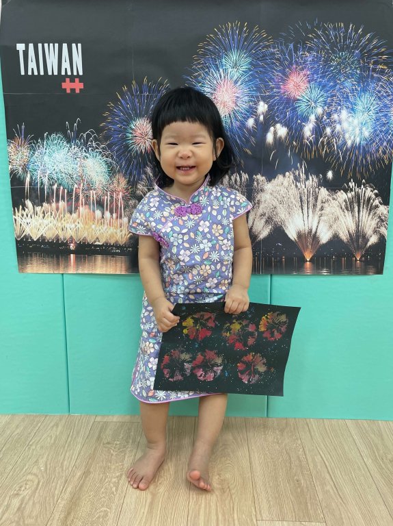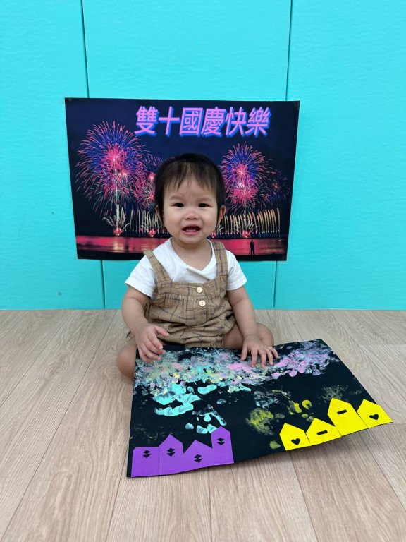 課程中讓寶貝們看煙火與國旗,利用手指沾上五彩顏色做按壓畫,在玩色彩中,創造出五顏六色絢麗的煙火秀,望眼看去好狀觀呀~一同慶祝雙十國慶日~