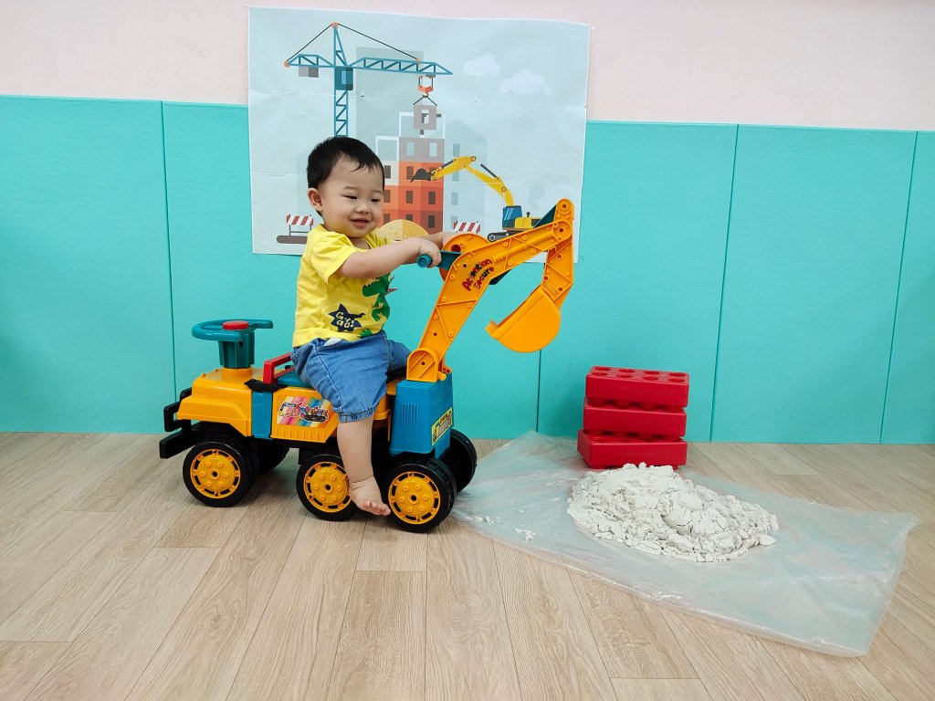 寶貝們在乘坐挖土機操作挖臂時,能訓練肌全身整體的協調能力,寶貝都玩得不亦樂乎。