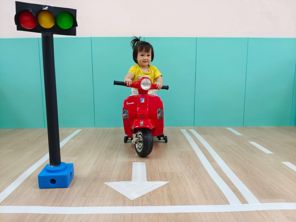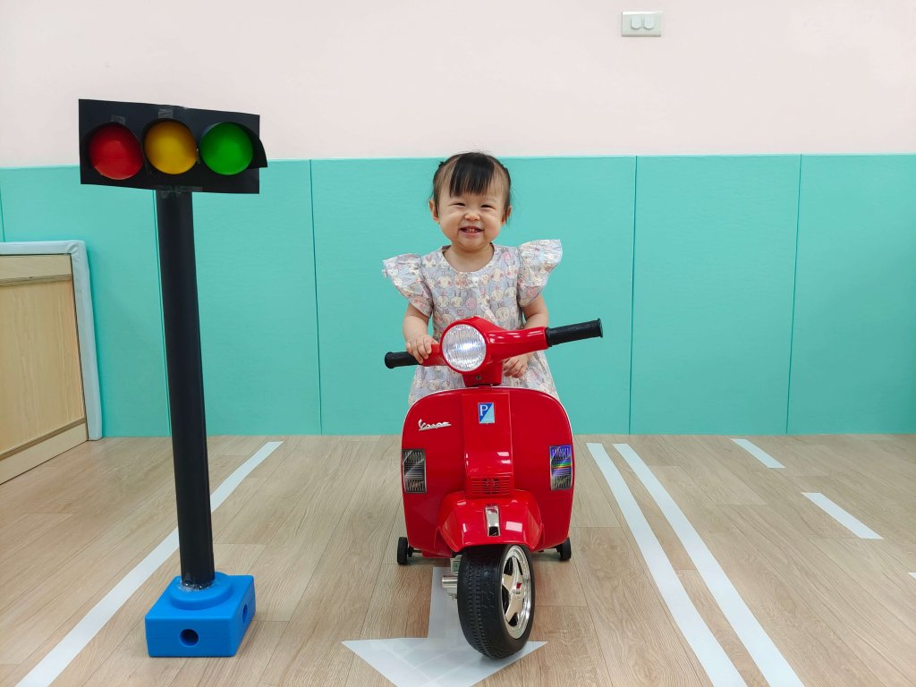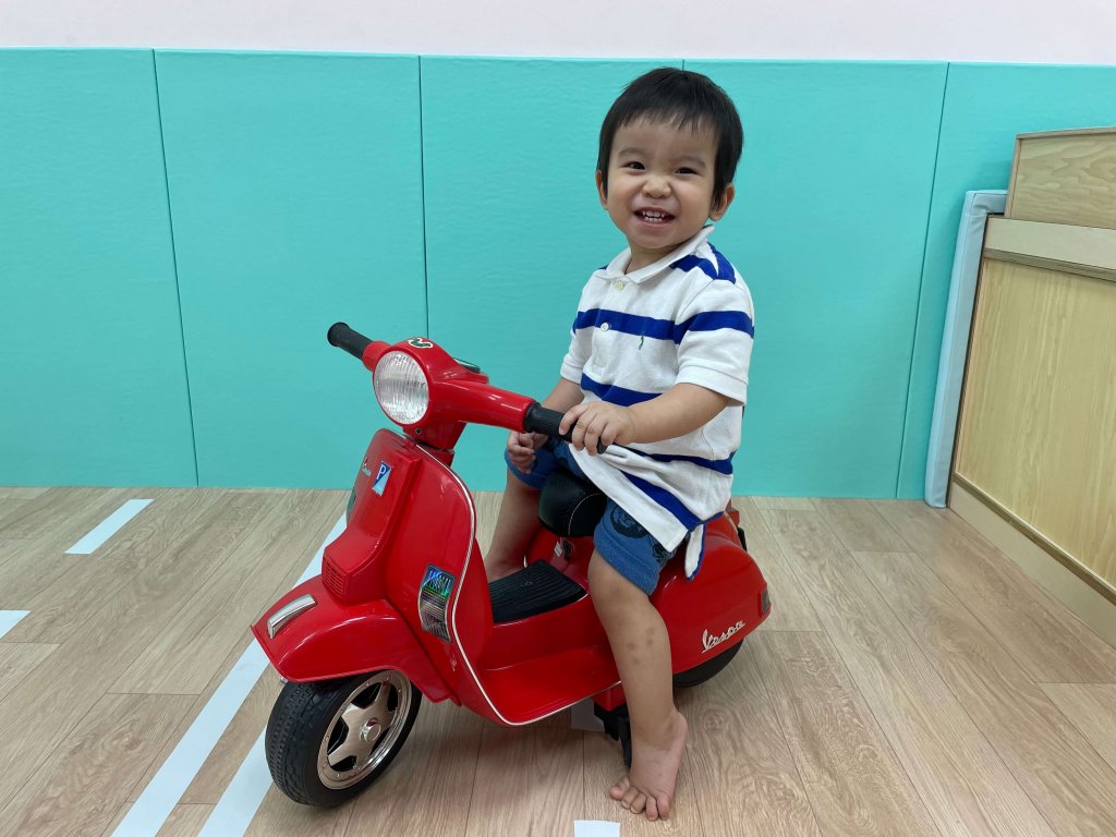 嗶嗶嗶~摩托車來囉!讓寶貝體驗騎車的感覺,每個寶貝都很有架勢騎車都姿勢一百分。