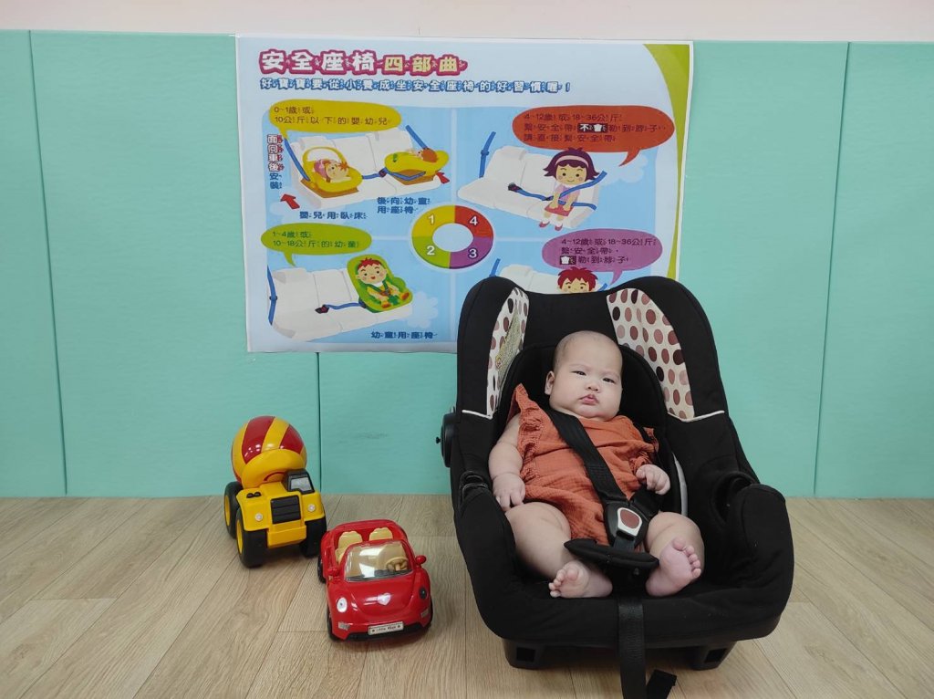 藉由課程中,讓寶貝學習安全座椅的重要性及乘車安全~