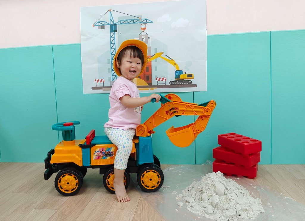 寶貝們在乘坐挖土機操作挖臂時,能訓練肌全身整體的協調能力,寶貝都玩得不亦樂乎。