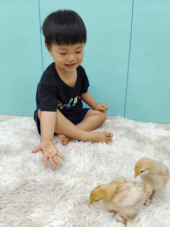 透過與小雞的互動,培養同理照顧的能力,就像媽咪照顧寶貝一樣。